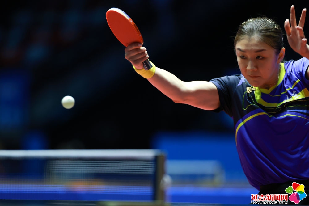 11月12日,山東隊選手陳夢在比賽中回球。新華社記者 劉續 攝